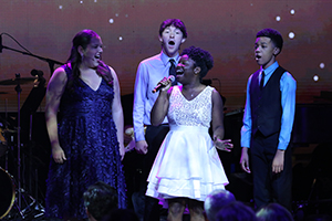 Guests arrived dressed to the nines for a red-carpet welcome in the Shirley Bush Helzberg Garden of the Stars, sponsored by Seigfreid Bingham. The evening continued with dinner and a celebratory program on the Jeannette and Jerome Cohen Community Stage, sponsored by JE Dunn Construction, where performances from talented Blue Star Award students and alumni filled the night with energy and emotion.